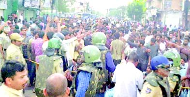 شیڈ کو توڑ دیا گیا ۔ اشتعال انگیز نعرہ بازی ۔ سنگباری میں چند نوجوان زخمی ۔ شر انگیزی کیلئے پہونچے بی جے پی رکن اسمبلی راجا سنگھ گرفتار ۔