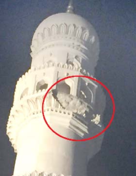 حیدرآباد۔یکم مئی، ( سیاست نیوز) تاریخی چارمینار کے جنوب مغربی سمت والے ایک مینار کی گُل بوٹے والی گچی منہدم ہوگئی۔ حال ہی میں آرکیالوجیکل سروے آف انڈیا نے چارمینار