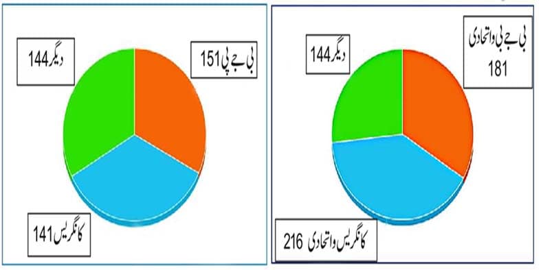 این ڈی اے 181 تک سمت کر رہ جائیگا ‘ بی جے پی کو 151 نشستیں ‘ کانگریس کو 141 اور ایس پی ۔ بی ایس پی کو 45 نشستوں
