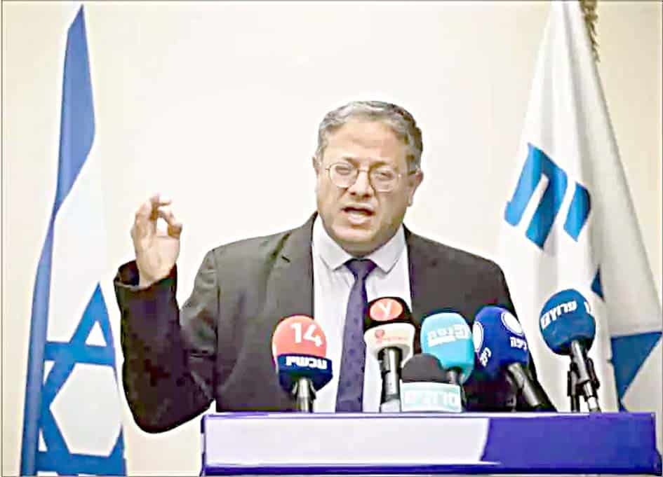 فلسطینیوں کیخلاف بن گویر کے اشتعال انگیز بیانات ۔ دفتر وزیراعظم نیتن یاہو کا متضاد موقف تل ابیب : اسرائیلی انتہا پسند وزیر قومی سلامتی اتمار بن گویر فلسطینیوں کے