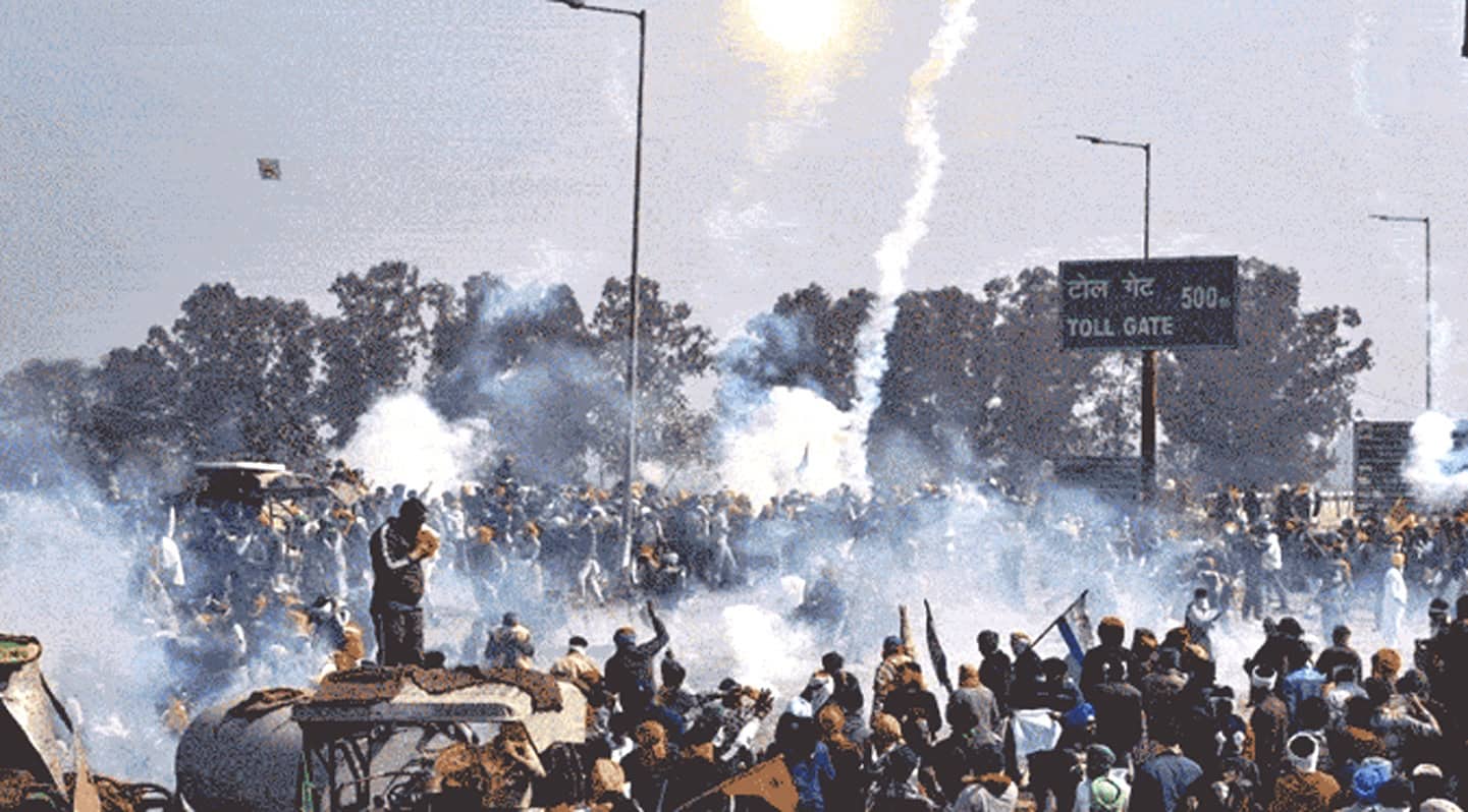 دہلی سرحد پر آنسو گیس ، آبی توپوں اور خارداررکاوٹوں سے استقبال! نئی دہلی : مودی حکومت کیخلاف احتجاجی کسانوں کو دہلی پہنچنے سے روکنے کیلئے مرکز ہر طرح کے