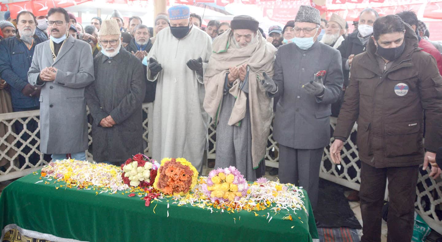 شیر کشمیر مرحوم شیخ عبداللہ کی یوم پیدائش کے موقع پر پارٹی کارکنوں سے خطاب سری نگر : نیشنل کانفرنس کے سرپرست اعلیٰ اور ممبر پارلیمنٹ ڈاکٹر فاروق عبدا ﷲ