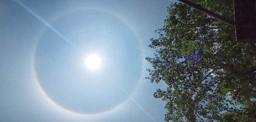 حیدرآباد۔ تلنگانہ کے عوام نے آج قوس قزح کے نادر منظر کا مشاہدہ کیا۔سورج کے اطراف یہ قوس قزح کا دائرہ تھا۔یہ ایک نادر بصری اور ماحولیاتی عمل کہلاتا ہے