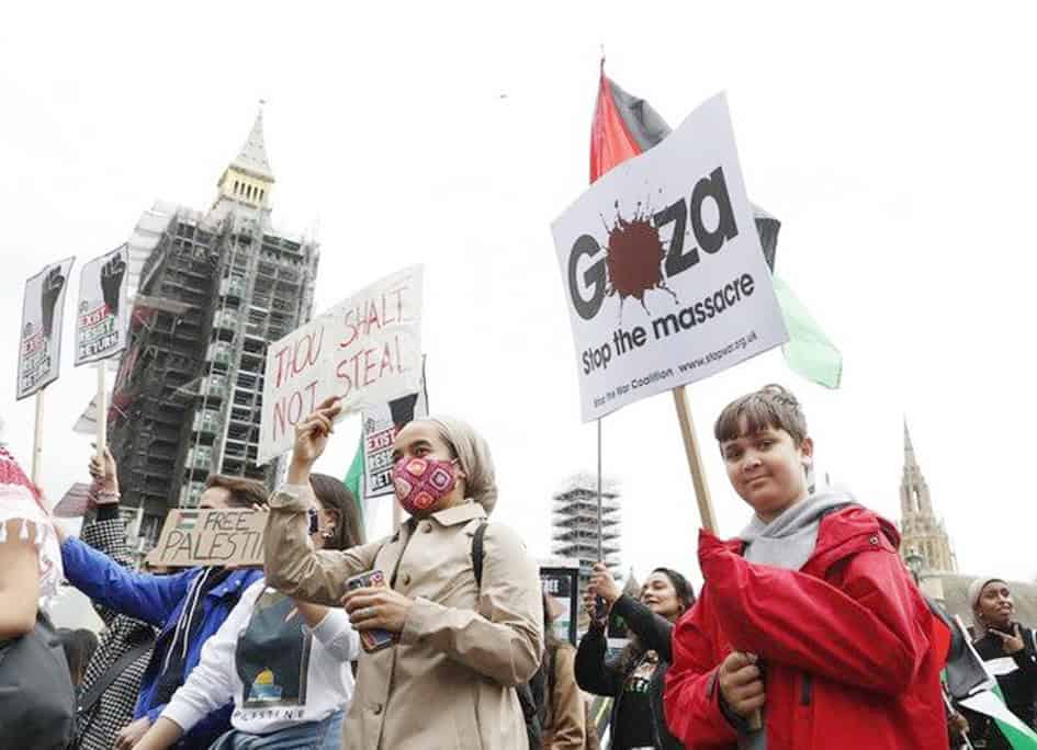 لندن : فلسطین پر اسرائیلی جارحیت کے خلاف دنیا بھر میں مظاہروں اور احتجاج کاسلسلہ جاری ہے۔لندن میں اسرائیلی جارحیت کے خلاف ہزاروں افراد سڑکوں پہ نکل آئے اور اسرائیل