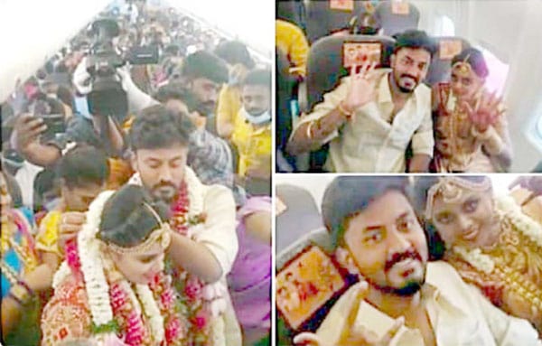 اسپیس جیٹ چارٹرڈ فلائیٹ میں ٹاملناڈو کے مدورائی کے ایک جوڑے نے دورانِ پرواز شادی رچائی جبکہ زائد از 160 رشتے دار طیارہ میں سوار تھے ۔ جیسے ہی یہ