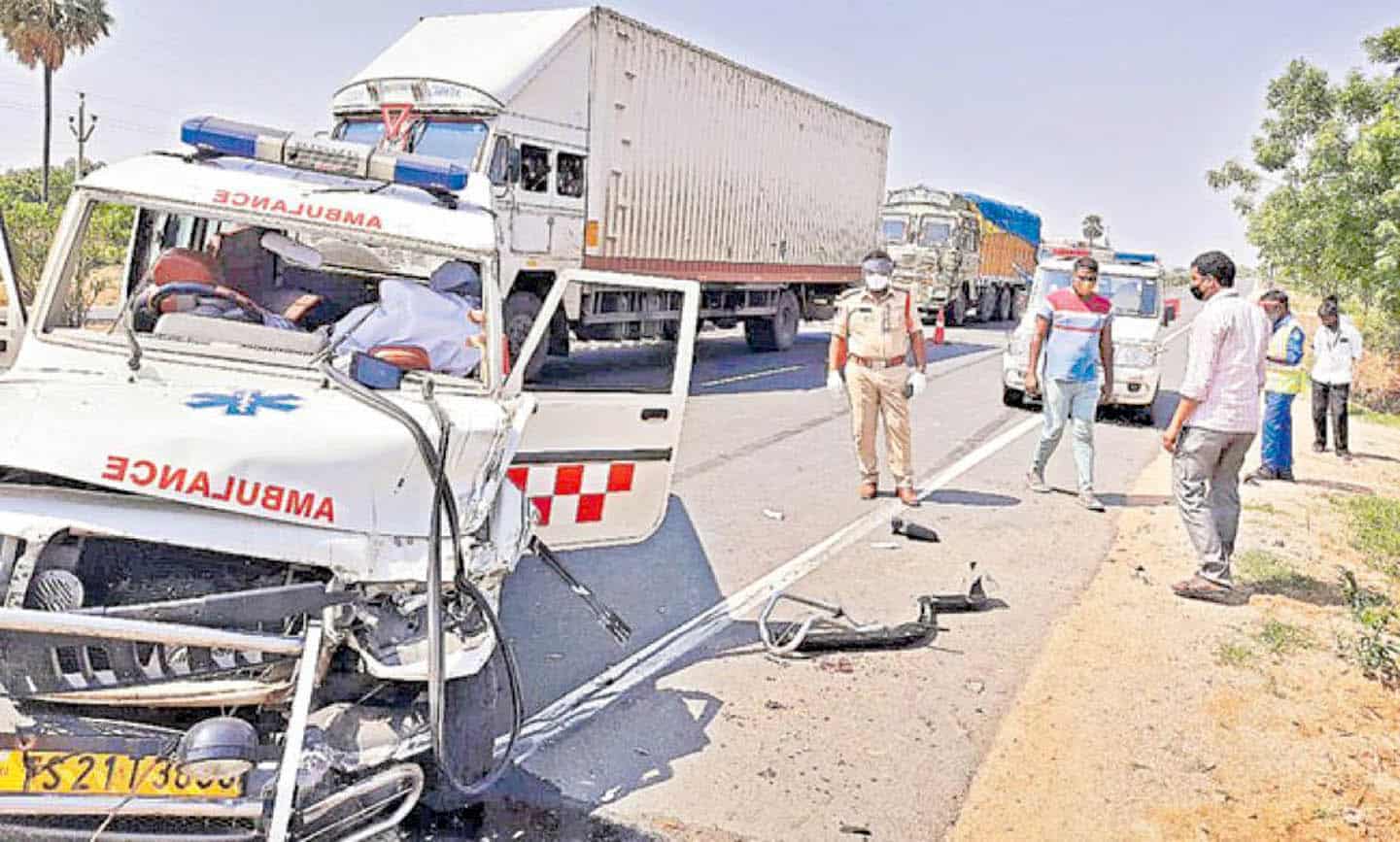 ٹپر نے ایمبولنس کو ٹکر دے دی۔ ایک ہی گھر میں دو اموات۔ گاؤں میں غم کا ماحولحیدرآباد۔ کورونا سے فوت بیٹے کی نعش کو منتقل کرنے کے دوران حادثہ