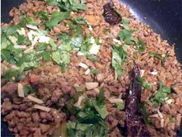 اجزا : بھنڈی آدھا کلو، نمک حسبِ ذائقہ، ادرک لہسن پسا ہوا ایک چائے کا چمچہ، پسا ہوا ناریل آدھی پیالی، ثابت لال مرچ تین سے چار عدد، ثابت رائی