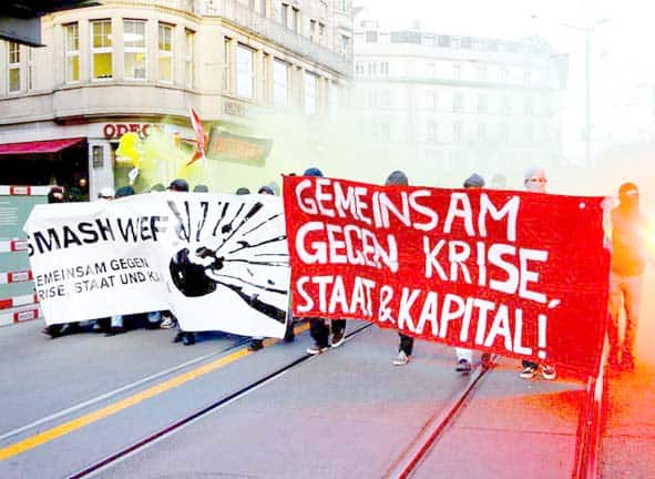 زیورخ: سوئٹزرلینڈ میں آج سے شروع ہونے والے عالمی اقتصادم فورم کے سالانہ اجلاس سے قبل زیورخ میں شہریوں نے سخت احتجاج کیا۔ اس دوران شہریوں نے سرمایہ دارانہ نظام