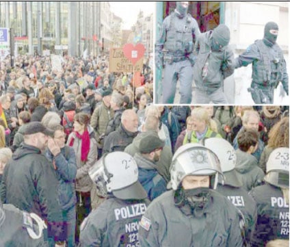 برلن : جرمن شہر منہائم میں لوگوں نے مظاہروں پر عائدپابندیوں کی خلاف ورزی کی اور جب سکیورٹی فورسز نے انہیں منتشر کرنے کی کوشش کی گئی تو وہ پرتشدد