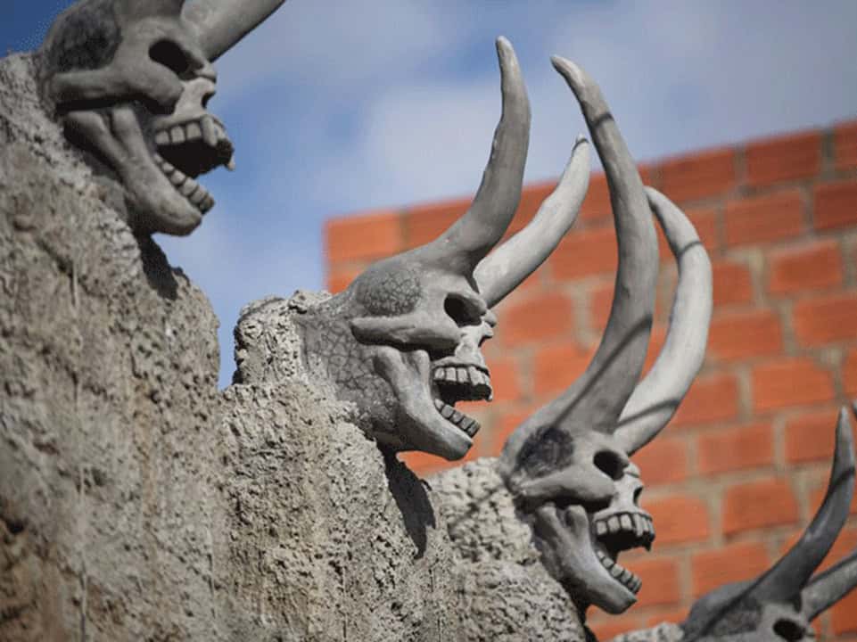 بولیویا: بولیویا کے ایک کانکن نے سینگوں والی شیطانی کھوپڑیاں اور دیگر پراسرار جانور اپنے گھروں کی دیواروں پر تعمیر کئے تھے۔ لیکن اب مقامی افراد اس سے خوف کھانے