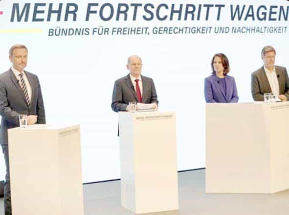 برلن : جرمنی میں سوشل ڈیموکریٹک پارٹی ایس پی ڈی، گرین پارٹی اور لبرل فری ڈیموکریٹس کے مابین اتحادی حکومت کے قیام کا معاہدہ طے پا گیا۔ خبررساں اداروں کے
