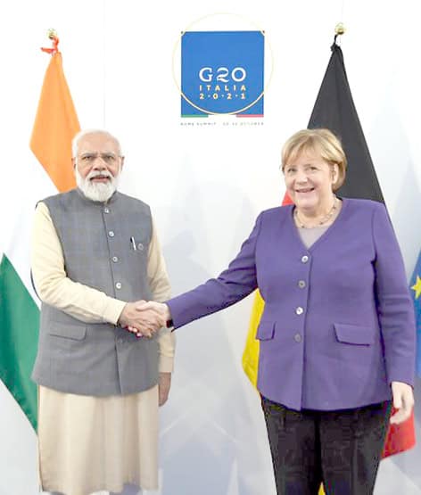 روم : وزیراعظم نریندر مودی اتوار کوجی-20 اجلاس کے موقع پر جرمن چانسلر انجیلا مرکل سے ملاقات کی اور باہمی امور پر تفصیلی تبادلہ خیال کیا۔ بتایا گیا ہیکہ دونوں
