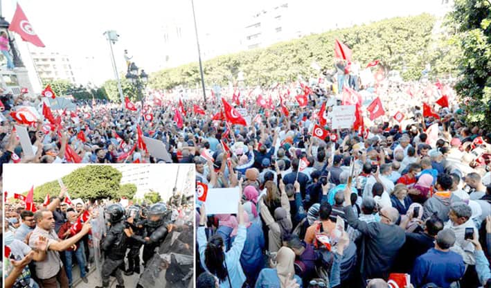 تیونس سٹی : تیونس میں صدر کے اقتدار پر مکمل قبضے کے خلاف ہزاروں افراد نے مظاہرہ کیا۔ اس کے دوران کئی مقامات پر پولیس کے ساتھ جھڑپوں میں کئی