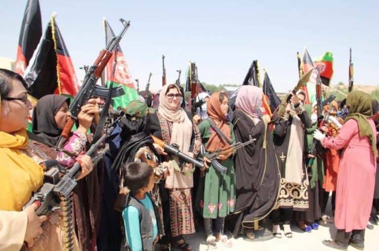 کابل، : افغانستان کے وسطی صوبے غور میں سیکڑوں مقامی خواتین نے احتجاجی مظاہرہ کیا۔ مظاہرے میں شریک خواتین نے بندوقیں تھام رکھی تھیں اور وہ افغان طالبان کے خلاف