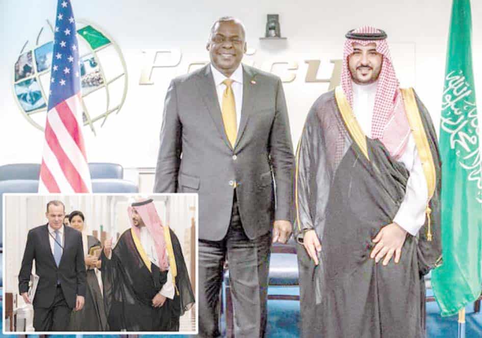 واشنگٹن : سعودی عرب کے نائب وزیردفاع شہزادہ خالد بن سلمان نے واشنگٹن میں امریکی وزیردفاع لائیڈ آسٹن ،جوائنٹ چیفس آف اسٹاف جنرل مارک ملر اور دیگر اعلیٰ عہدے داروں