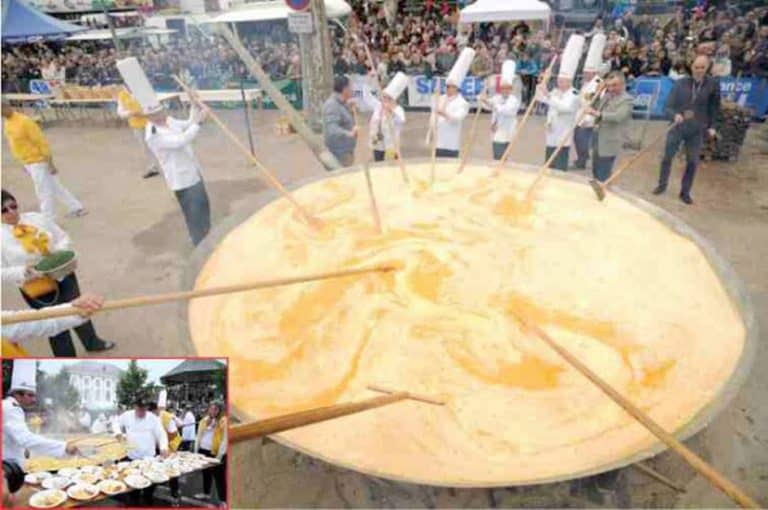 بلجیم: بلجیم کے ایک چھوٹے سے شہر میں رضاکاروں نے 10 ہزار انڈوں پر مشتمل آملیٹ تیار کیا۔ جسے ہزاروں افراد نے چند منٹوں میں کھا کر ختم کر دیا۔