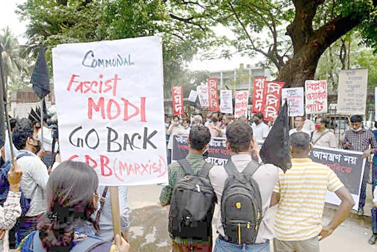 ڈھاکہ: ہندوستان کے وزیر اعظم نریندر مودی کے جاریہ ہفتہ دورہ بنگلہ دیش کی مخالفت میں ڈھاکہ میں احتجاج کا سلسلہ جاری ہے۔ڈھاکہ کے مقامی میڈیا کے مطابق ڈھاکہ یونیورسٹی