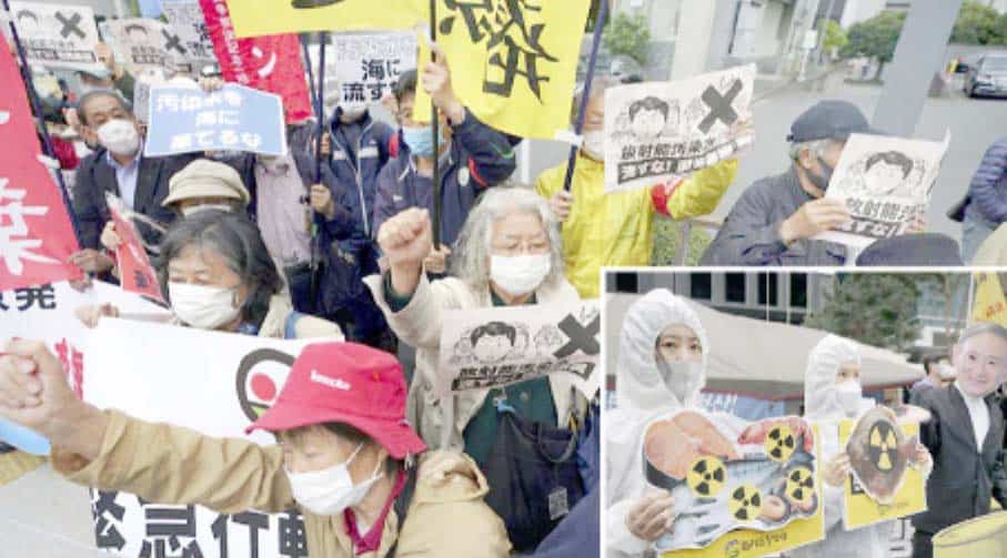 ٹوکیو : جاپان میں نیوکلیئر بجلی گھر سے نکلنے والے تابکاری پانی کو تطہیر کیے بغیر سمندر میں چھوڑنے پر شہری مشتعل ہوگئے۔ خبررساں اداروں کے مطابق ماہی گیر صنعت