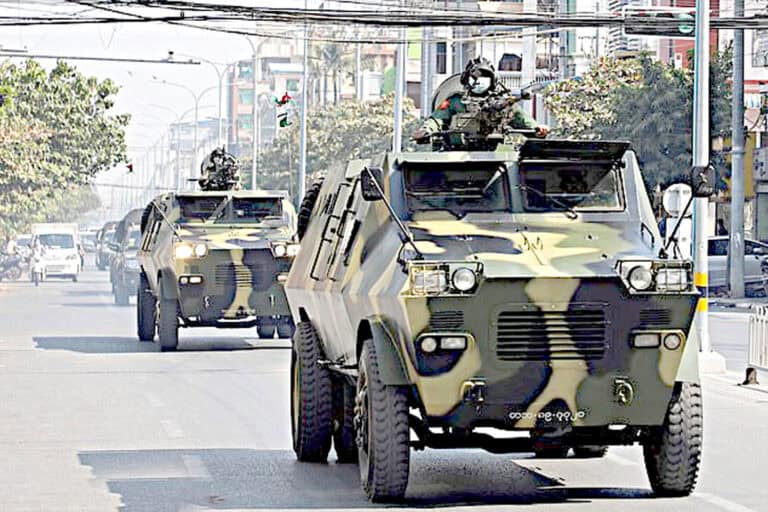 نیاپڈو۔ایک عورت جو ایروبکس کی پیشکش میں مصروف تھی غیرارادی طور پر اس کے کیمرہ میں میانمار کی بغاوت قید ہوگئی ہے۔ اس ویڈیو میں سڑک پر گشت کرتے ہوئے