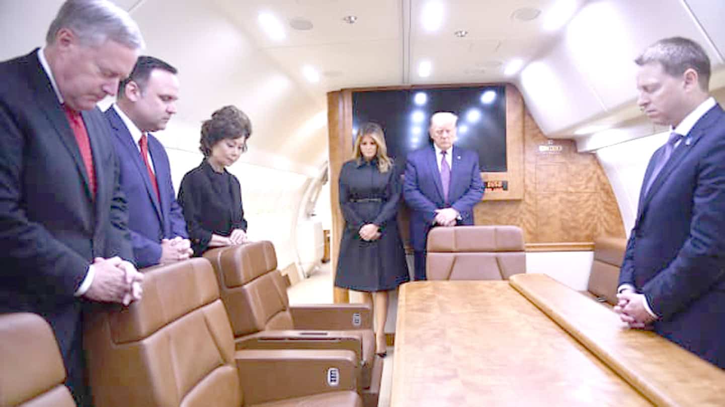 پنسلوینیا کے مقام جانس ٹاؤن میں ایئرفورس ون سے سفر کے دوران امریکی صدر اور فرسٹ لیڈی نے سینئر اسٹاف کیساتھ کچھ لمحات خاموشی منائی۔