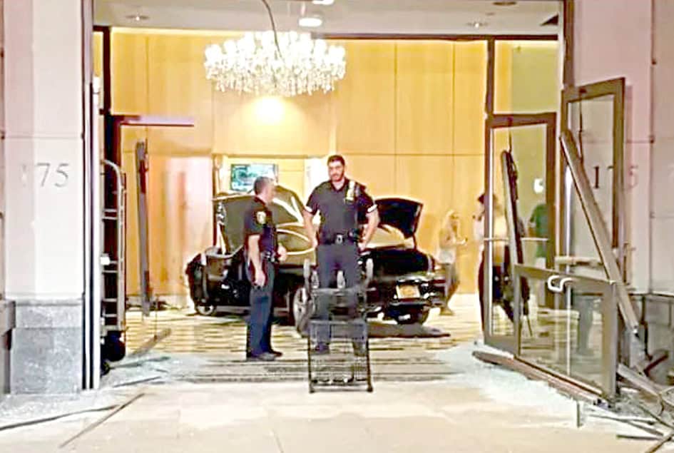 ٭ مشہور و معروف ٹرمپ پلازا ریسیڈنشیل ٹاور کی لابی میں ایک کار گھس پڑی ۔ نیویارک نیو روشیل میں واقع اس ٹاور میں پیش آئے اس حادثہ میں کوئی