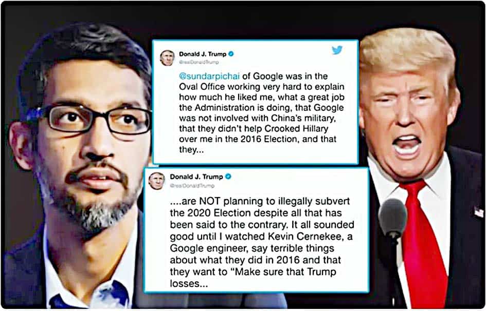 واشنگٹن۔ 7 اگست (سیاست ڈاٹ کام) امریکی صدر ڈونالڈ ٹرمپ نے منگل کے روز اپنے ٹوئٹر کے ذریعہ گوگل کے سی ای او سندر پچائی کی تنقید کا نشانہ بنایا