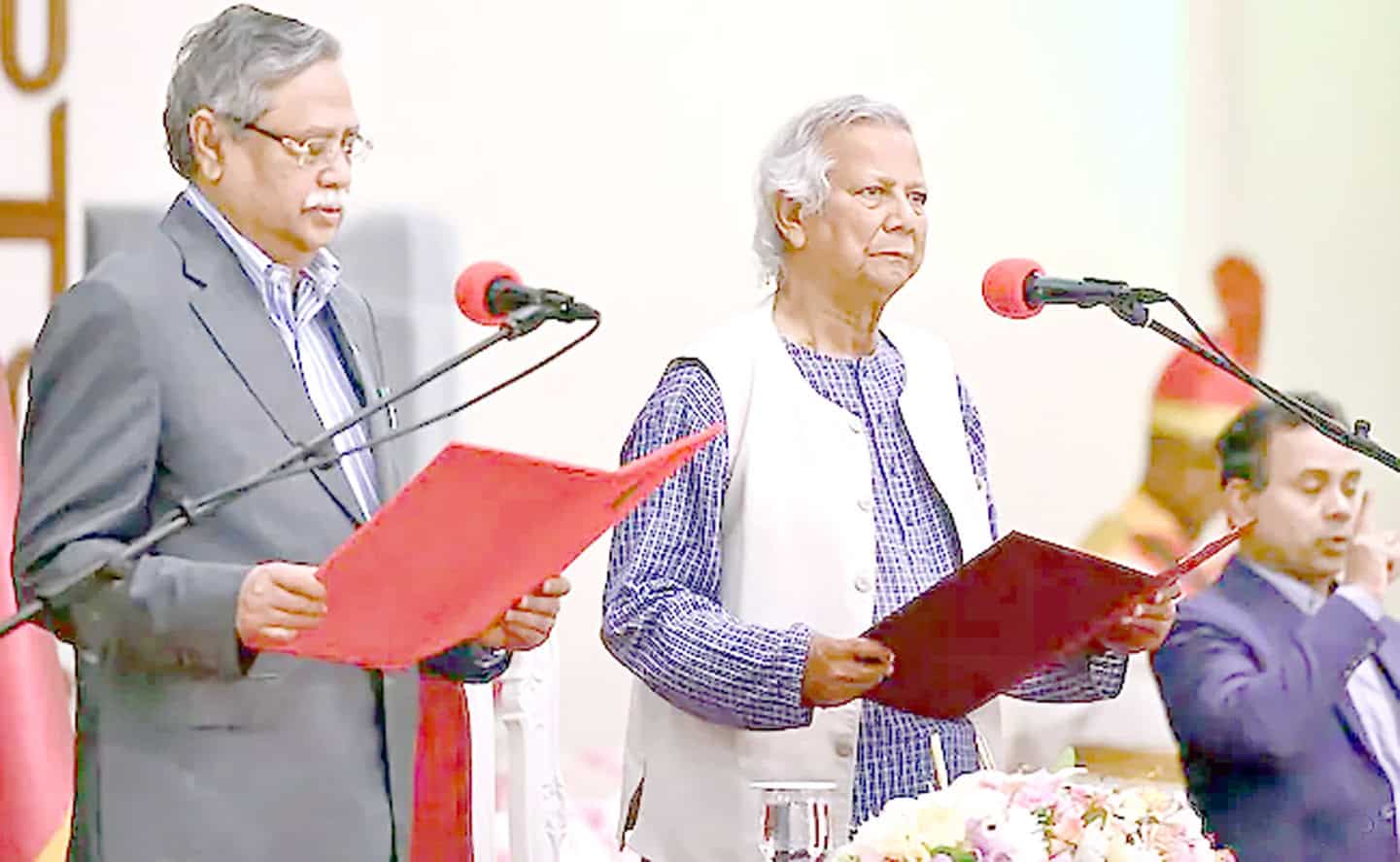 محمد یونس کی بحیثیت سربراہ حلف برداری‘ حکومت میں طلباء نمائندے بھی شاملڈھاکہ :دیش میں عبوری حکومت کی تشکیل عمل میں آگئی ہے ۔ محمد یونس نے عبوری حکومت کے