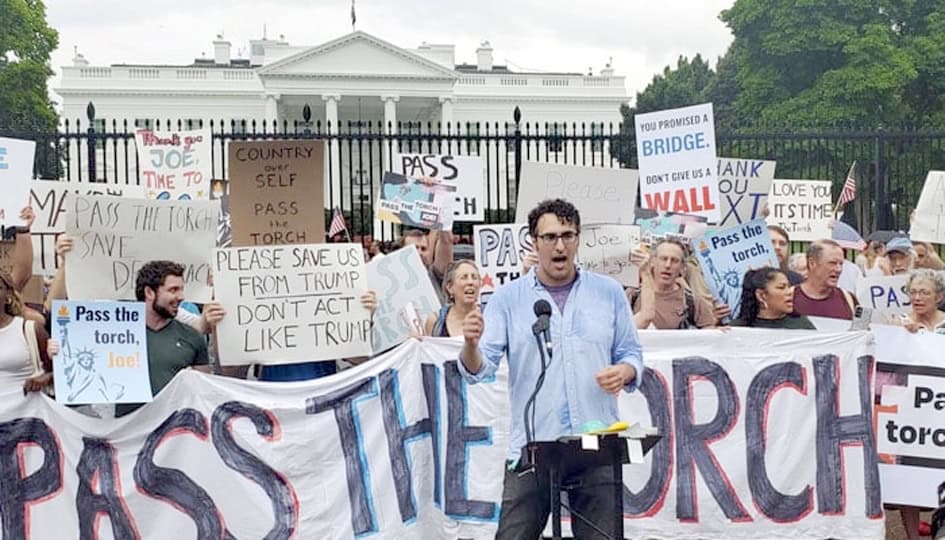 بائیڈن کو دستبردار کرانے کیلئے وائٹ ہاؤس کے باہر ریالی