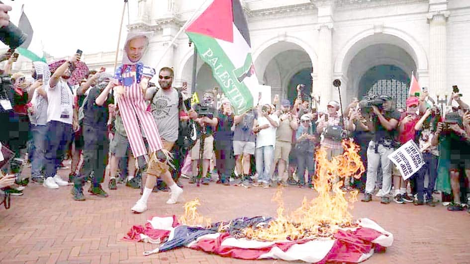 واشنگٹن: امریکی نائب صدر اور ڈیمو کریٹس کی اگلے صدارتی انتخاب کیلئے امیدوار کملا ہیریس نے چہارشنبہ کے روز واشنگٹن میں امریکی پرچم جلانے کی مذمت کی ہے۔ یہ پرچم