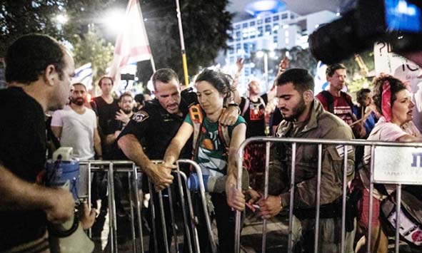 تل ابیب : اسرائیلی دارالحکومت تل ابیب میں رات کو اسرائیلی حکومت کے خلاف بڑا مظاہرہ کیا گیا جس میں ہزاروں افراد شریک ہوئے اور مظاہرین کی جانب سے جنگ