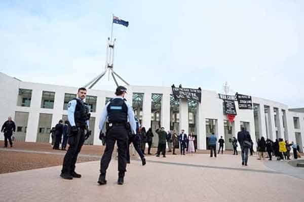 سڈنی : آسٹریلیا کے دارالحکومت کینبرا میں فلسطین کے حامی مظاہرین پارلیمنٹ ہاؤس کی چھت پر چڑھ گئے اور اپنا احتجاج ریکارڈ کرایا۔عرب نیوز کے مطابق مظاہرین نے چھت پر