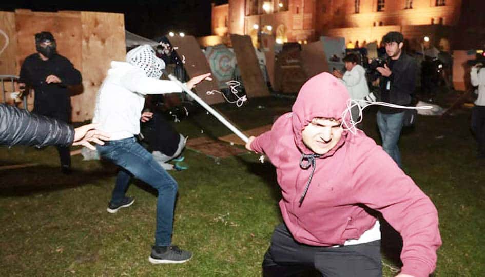 لاس اینجلس : امریکی شہر لاس اینجلس کی یونیورسٹی میں فلسطین کے حامیوں پر اسرائیل کے حامیوں نے حملہ کردیا۔غزہ جنگ بندی کے حامی متعدد طلباء اسرائیلی حامیوں کے حملے