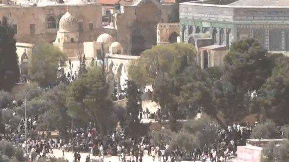 یروشلم: رمضان المبارک کے جمعتہ الوداع کے موقع پر اسرائیلی فوج نے مسجد اقصیٰ میں نماز کے لیے آنے والے فلسطینیوں پر ڈرون کے ذریعے گیس بم پھینکے جس کے