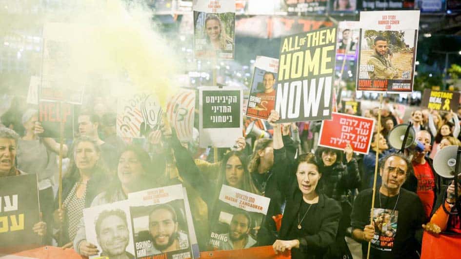 تل ابیب : اسرائیل کے دارالحکومت تل ابیب میں غزہ کی پٹی میں جن لوگوں کے رشتہ داروں کو یرغمال بنایا گیا تھا، کے مظاہرے کے دوران ایک شاہراہ کو