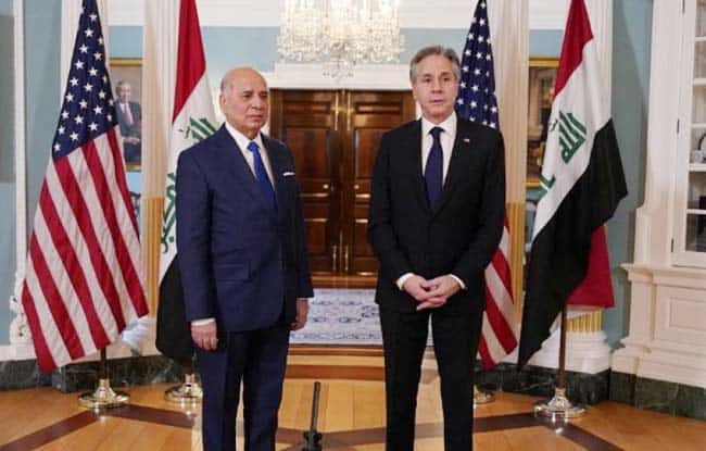 واشنگٹن : امریکی وزیر خارجہ انٹونی بلنکن نے کہا ہے کہ داعش اب بھی دنیا کیلیے خطرہ ہے۔ بلنکن نے واشنگٹن میں عراق کے نائب وزیراعظم اور وزیر خارجہ فواد