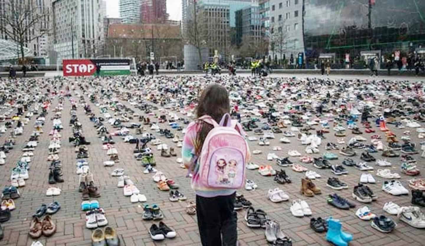 بچوں کے 8 ہزار جوتے سڑک پر رکھ کر احتجاج‘عالمی بے حسی کو آئینہ دکھانے کی کوشش روٹرڈیم: نیدرلینڈز میں غزہ کے شہید بچوں سے اظہار یکجہتی کے لیے بچوں