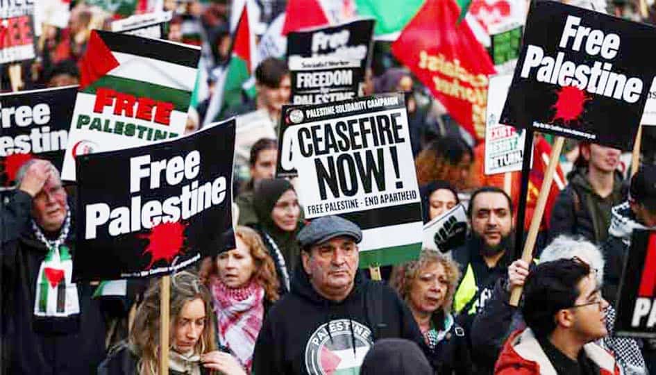 لندن : غزہ میں اسرائیلی مظالم کے خلاف دنیا بھر میں بڑے پیمانے پر احتجاجی مظاہروں کا سلسلہ جاری ہے۔برطانوی میڈیا کے مطابق شمالی لندن میں احتجاجی ریلی کے دوران