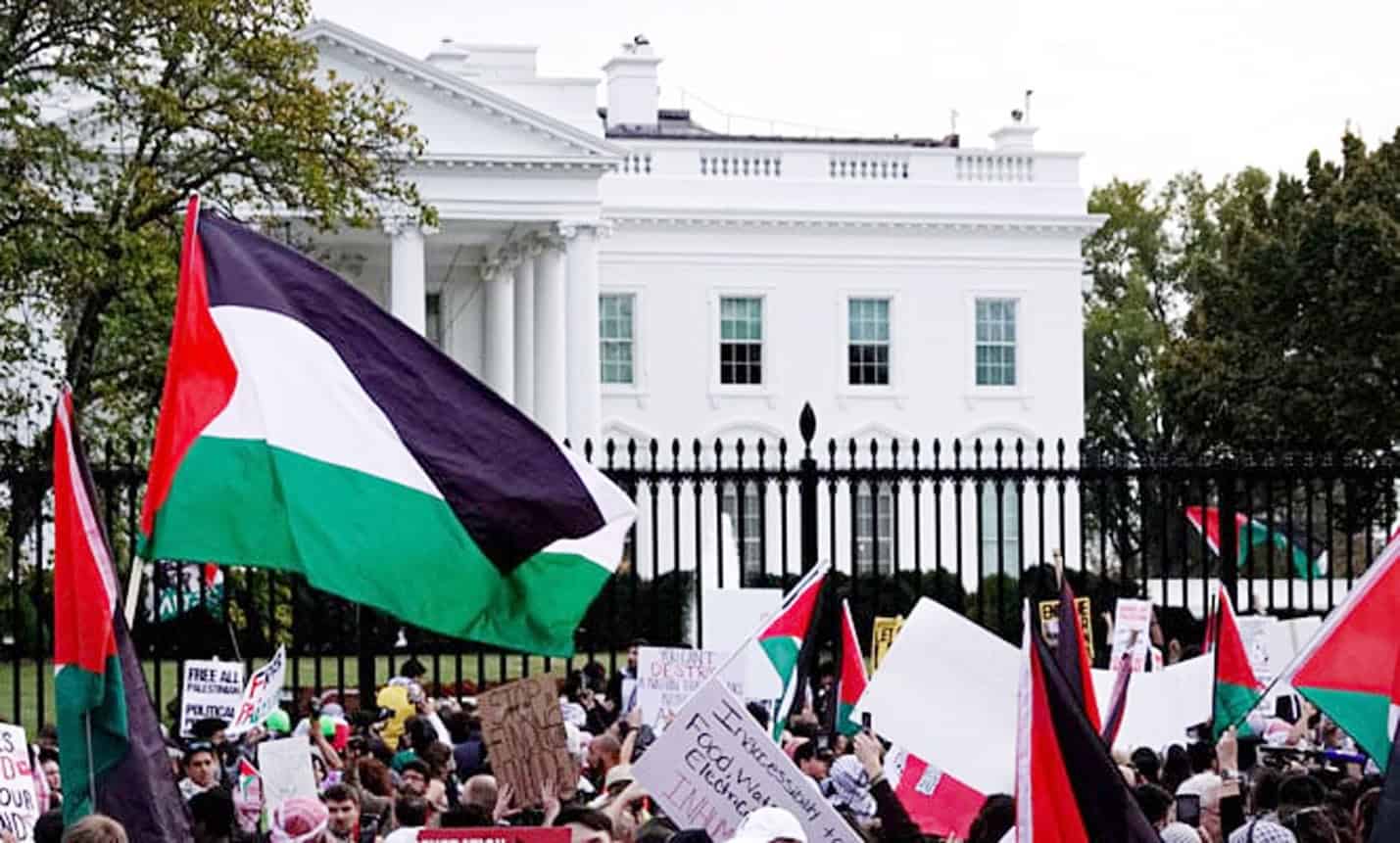 وائٹ ہاؤس کے باہر ملازمین کا احتجاج‘ غزہ میںجنگ بندی کا مطالبہ واشنگٹن: فلسطین پر اسرائیلی مظالم کے خلاف امریکی صدر جو بائیڈن انتظامیہ کے ملازمین بھی چپ نہ رہے