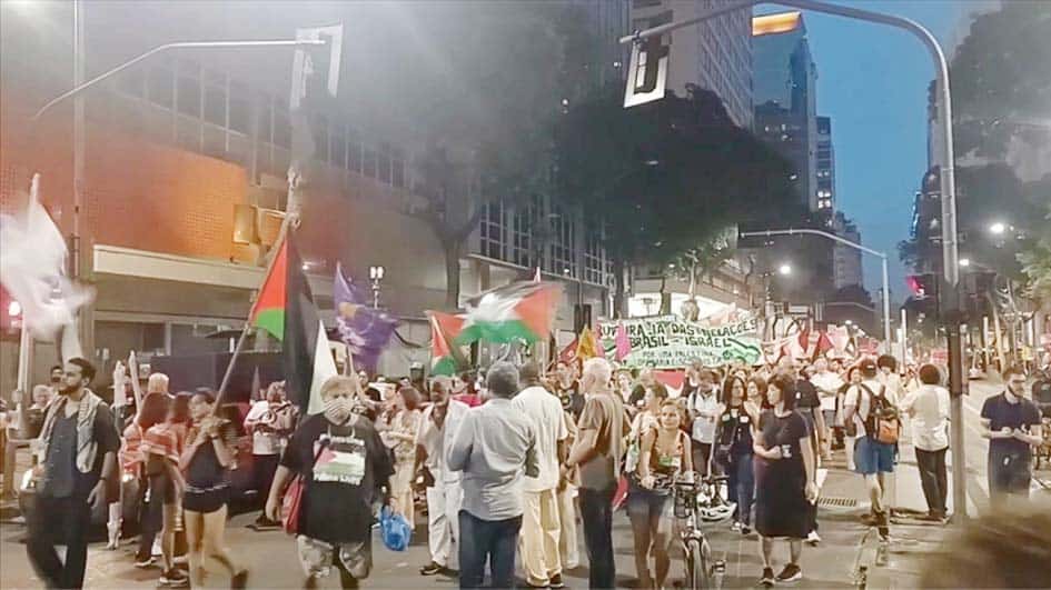 برازیلیا : برازیل میں سینکڑوں افراد نے غزہ پر اسرائیل کے حملوں کے خلاف اور فلسطین کی حمایت کے لیے امریکی قونصل خانے کی طرف مارچ کیا۔ریو دی جنیرو میں