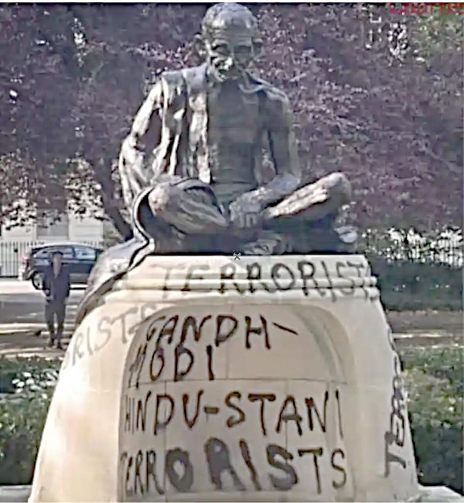 ٹیوسٹاک اسکوائر گاندھی کے مجسمے کو مسخ کر دیا گیا۔ برطانیہ کی پولیس گواہوں کی اپیل کے بعد ہندوستان سخت کارروائی کا خواہاں ہے۔ لندن: برطانیہ کی میٹروپولیٹن پولیس نے