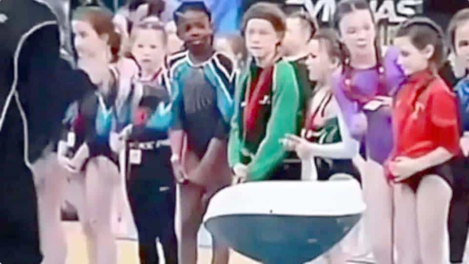ایمسٹرڈم: آئرلینڈ میں جمناسٹک مقابلے کے دوران ایک لڑکی اس وقت اٹھ کھڑی ہوئی جب اسے نوجوان شرکاء میں تمغے تقسیم کرنے والے اہلکار کی طرف سے نظر انداز کر