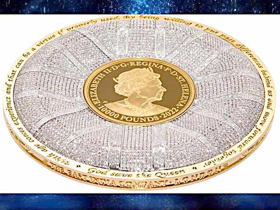 لندن: برطانوی کمپنی نے ملکہ ایلزبتھ دوم کی پہلی برسی پر ساڑھے تین کلوگرام سونے سے بنا سکہ بنایا ہے جس پر 6426 ہیرے جڑے ہیں اور اس کی قیمت