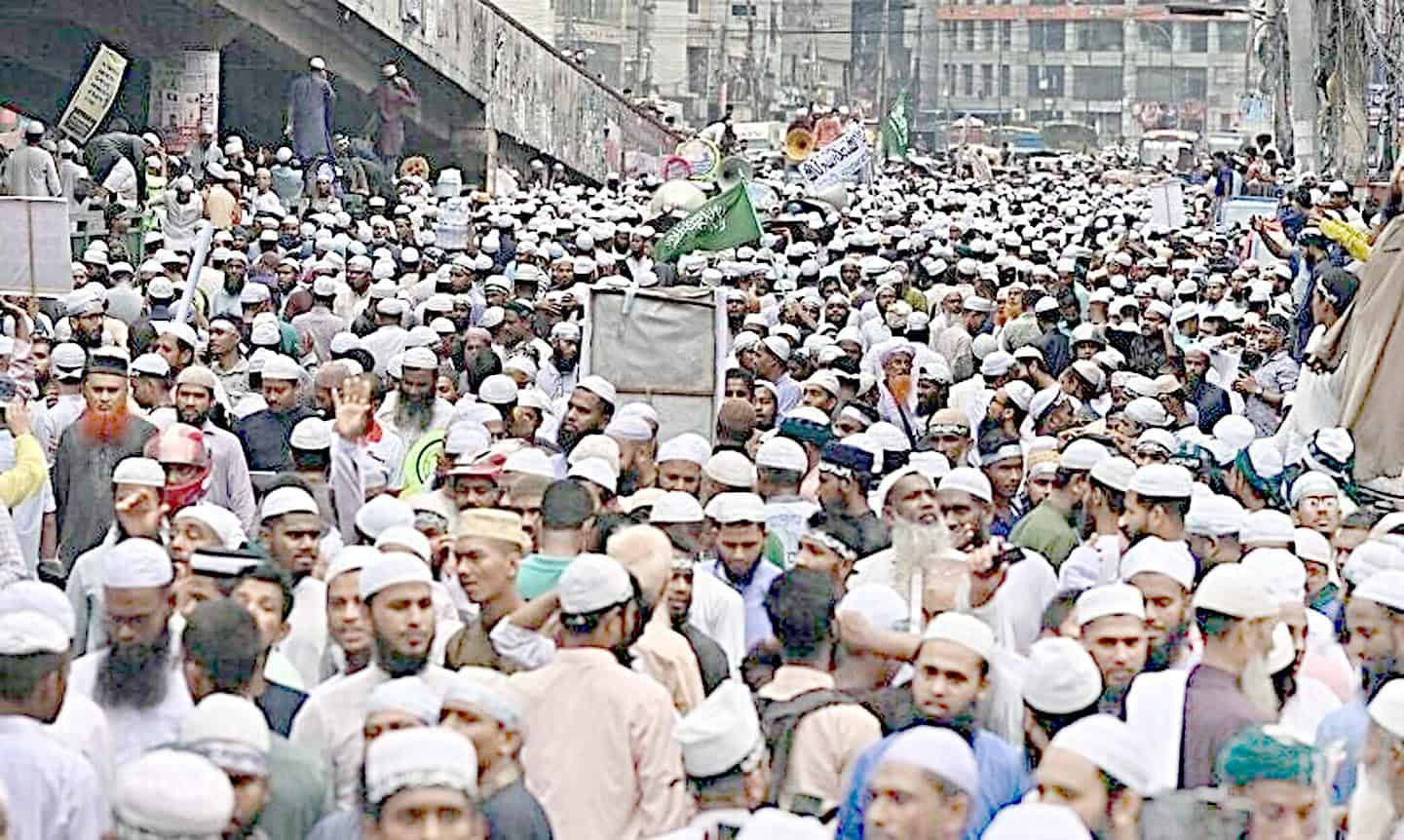 ڈھاکہ : بنگلہ دیش میں قرآن پاک کے درجنوں نسخوں کو نذر آتش کیے جانے کے بعد ہزاروں مشتعل افراد نے مظاہرہ کیا جس کے نتیجے میں متعدد پولیس اہلکار