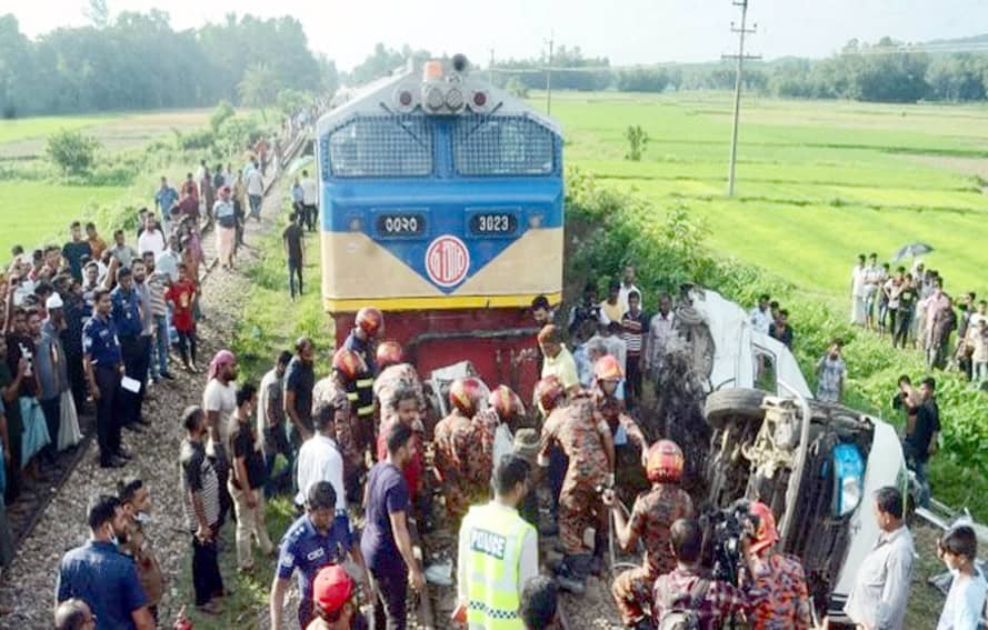 ڈھاکہ۔ بنگلہ دیش کے جنوب مشرق میں ایک ریل کراسنگ پر ایک ٹرین اورسیاحوں کی منی بس کے درمیان تصادم کے نتیجیمیں کم از کم 11 افراد ہلاک ہو گئے۔
