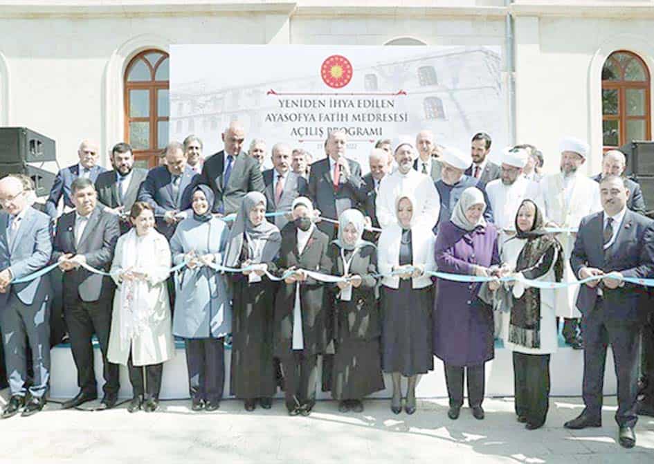 استنبول : تْرک صدر رجب طیب اردغان نے بڑے شہر استنبول میں ایا صوفیہ فاتح مدرسے کا افتتاح کردیا۔ خبررساں اداروں کے مطابق مدرسے کا نام سلطنت عثمانیہ کے حکمراں