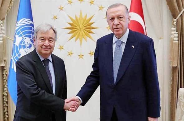 نیویارک : اقوام متحدہ نے کہا ہے کہ ترکی کے صدر رجب طیب اردغان اور اقوام متحدہ کے سیکرٹری جنرل انتونیو گٹرس کے درمیان ملاقات میں “یوکرین کے جنگ سے