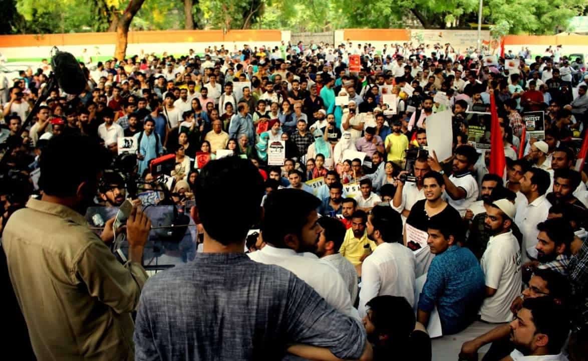 مبینہ مارپیٹ میں ہلاک ہونے والے تبریز انصاری کے ساتھ انصاف کا مطالبہ کرتے ہوئے چہارشنبہ کے روز جنتر منتر پر سینکڑوں لوگ جمع ہوئے تھے