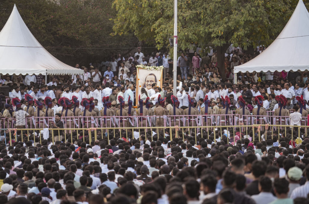 احاطے کے اندر جہاں میت کو آخری درشن کے لیے رکھا گیا تھا، اجیت پوار کی اہلیہ اور راجیہ سبھا ایم پی سنیترا پوار، ان کے بیٹے پارتھ اور جے، اور ان کے چھوٹے بھائی شرینواس پوار نے ہاتھ جوڑ کر لوگوں سے خراج عقیدت قبول کیا۔