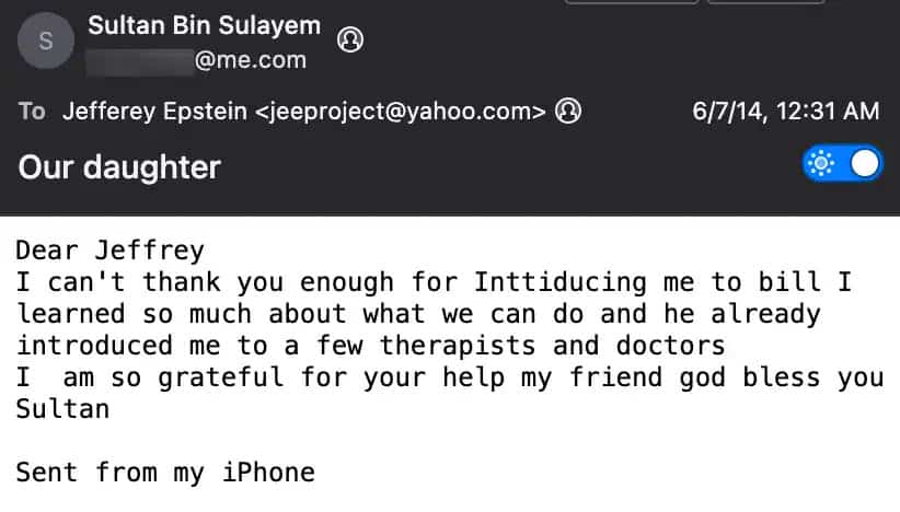 “مجھے لگتا ہے کہ آپ سے ملنا چاہیے۔ وہ مکتوم (دبئی کے حکمران) کا دایاں ہاتھ ہے،” ایپسٹین کی 18 جون 2013 کو لیک ہونے والی ای میلز میں پڑھا گیا۔