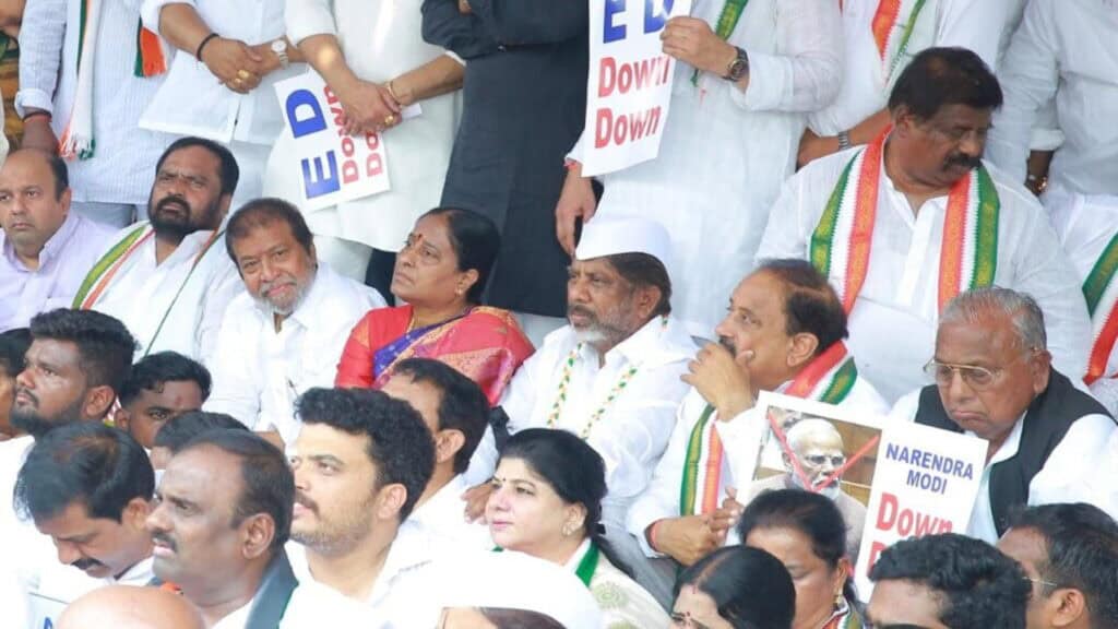 وزراء دامودر راجہ نرسمہا، پونم پربھاکر، جوپلی کرشنا راؤ، تمالا ناگیشور راؤ، کونڈا سریکھا، سینئر لیڈر اور سابق ایم پی وی ہنومنت راؤ نے شہر کے قلب میں واقع بشیر باغ میں ای ڈی کے دفتر کے باہر دھرنے میں حصہ لیا۔